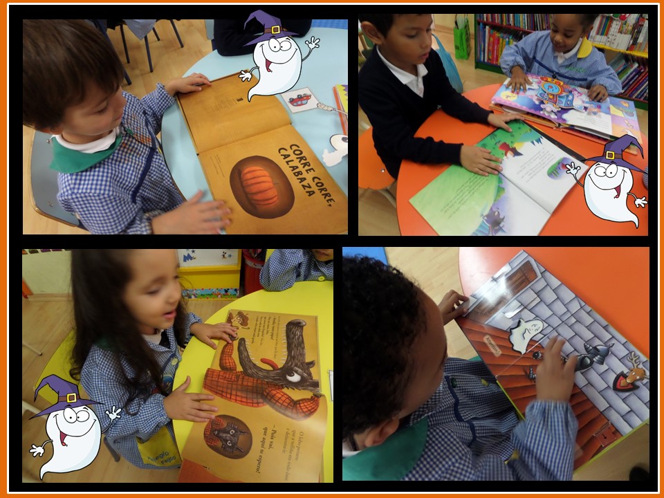 Comenzamos así los preparativos de Halloween con nuestra recién estrenada biblioteca!!! Estuvimos buscando libros que tuviesen fantasmas, murciélagos, brujas, murciélagos, calabazas... Y mirad todo lo que encontramos...!!
